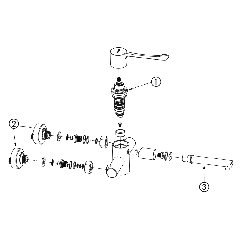 Thermostatic mixer ideal for healthcare facilities, retirement and care homes, hospitals and clinics.