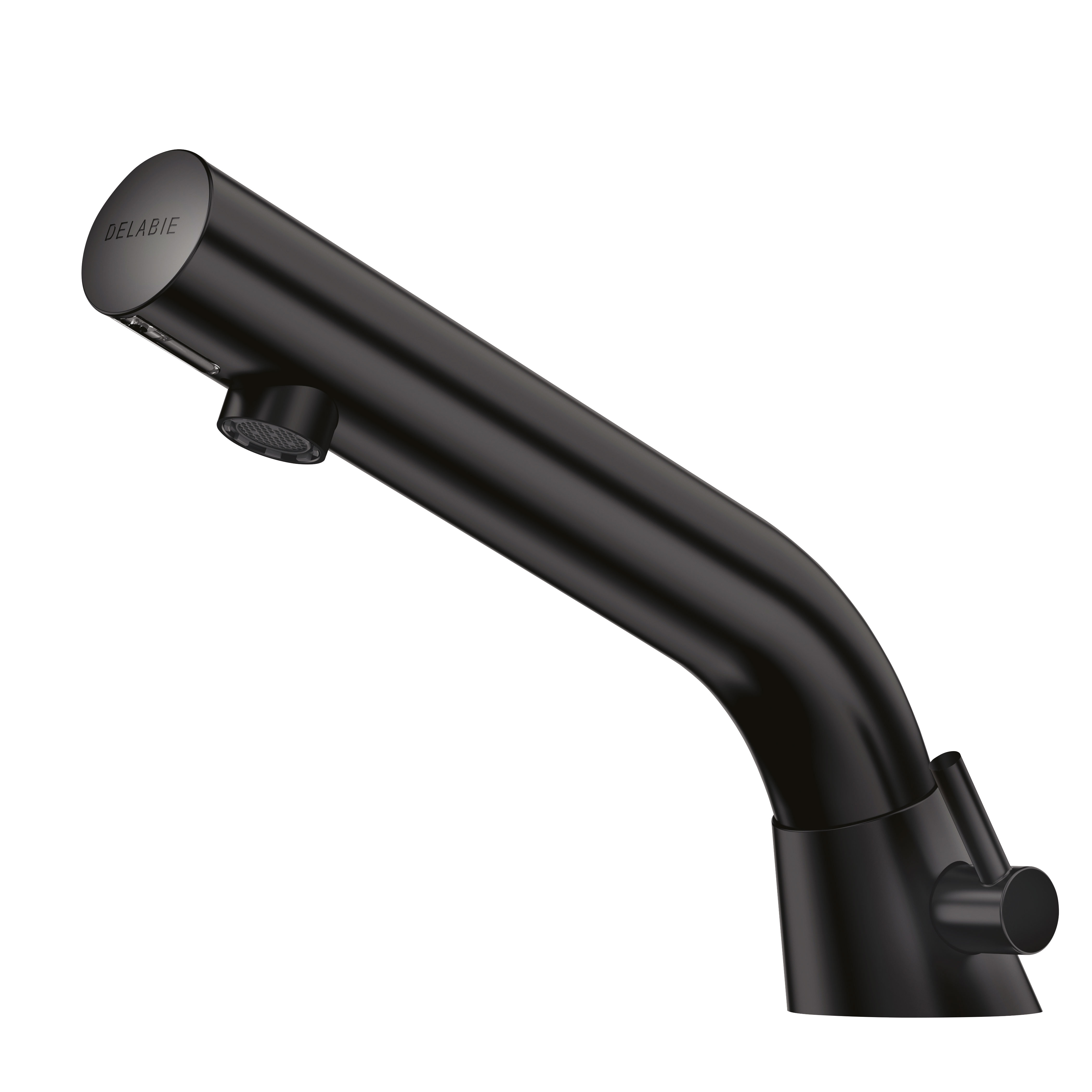 Deck-mounted matte black electronic basin mixer: