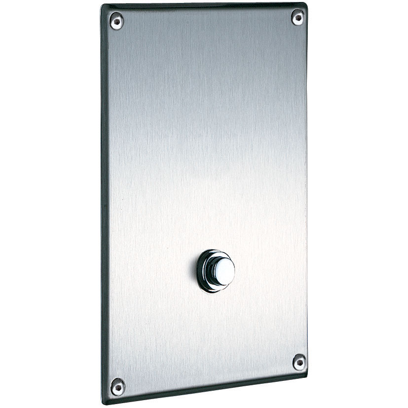 Solid brass body and chrome-plated metal push-button.