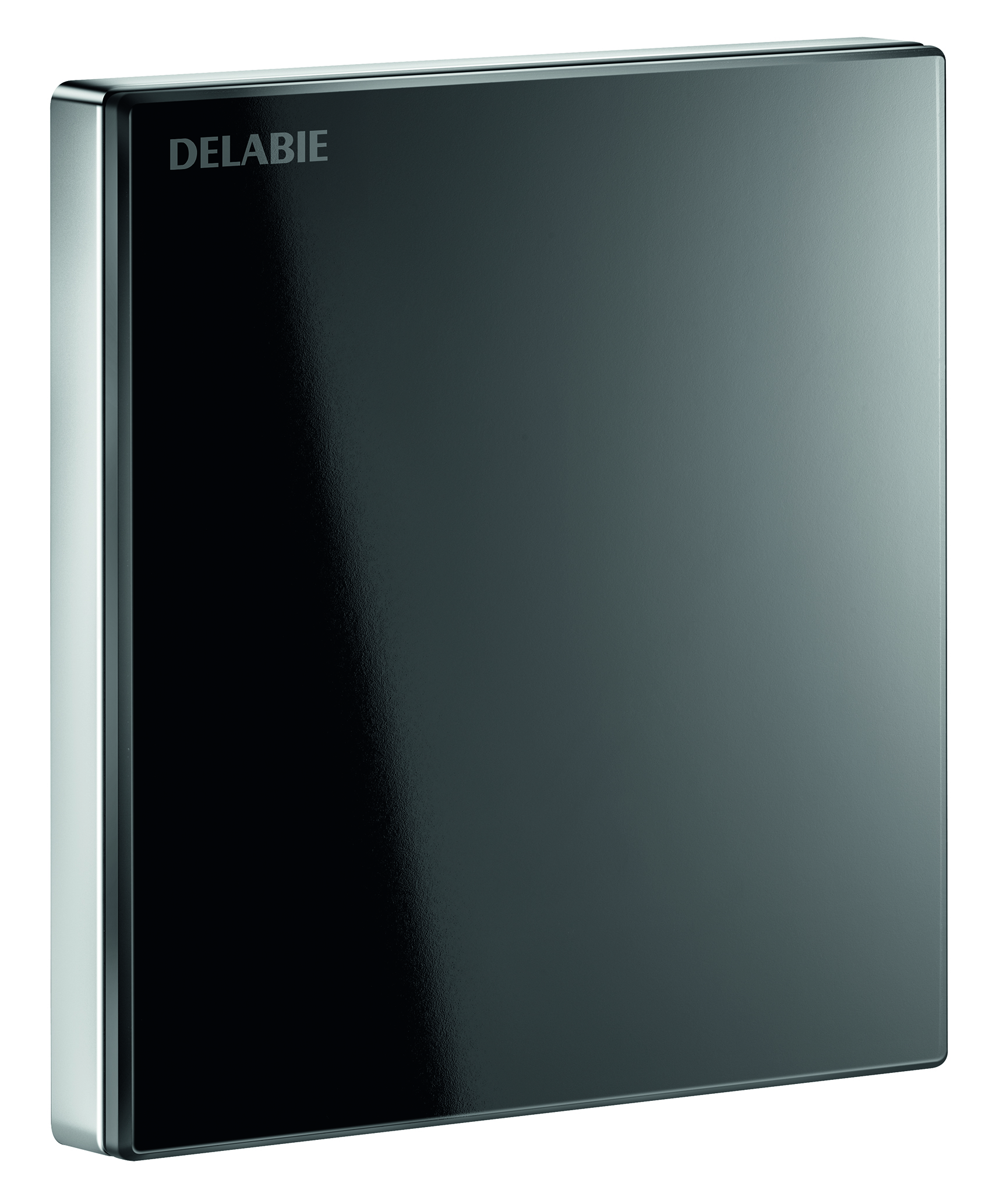 Black wall plate 145 x 145mm in shock-resistant tempered glass with integrated electronics.