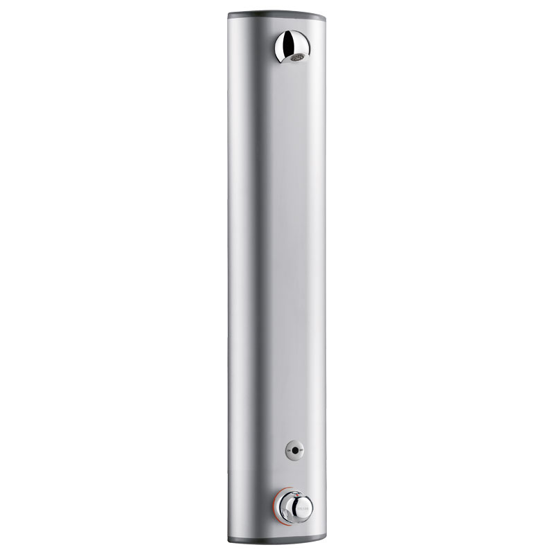 Anodised aluminium shower panel for wall-mounted, exposed installation.