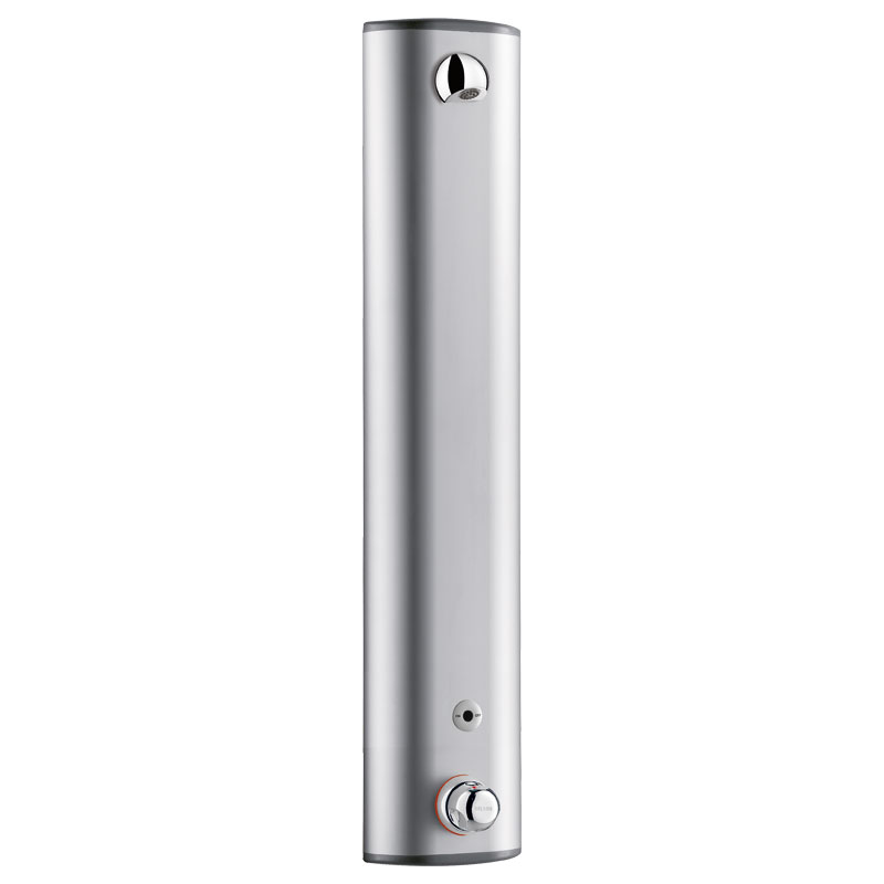 Anodised aluminium shower panel for wall-mounted, exposed installation.