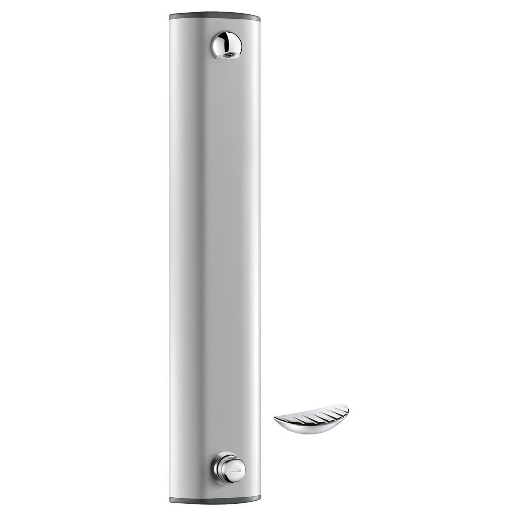 Anodised aluminium shower panel for wall-mounted, exposed installation.