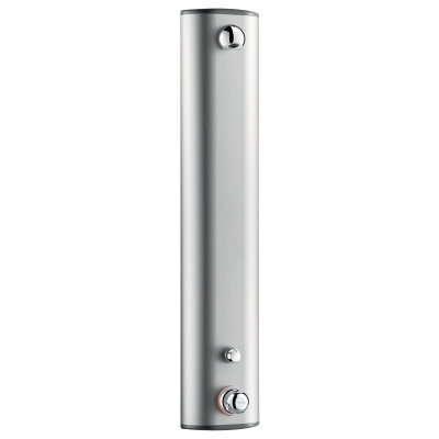 Anodised aluminium shower panel for wall-mouted, exposed installation.