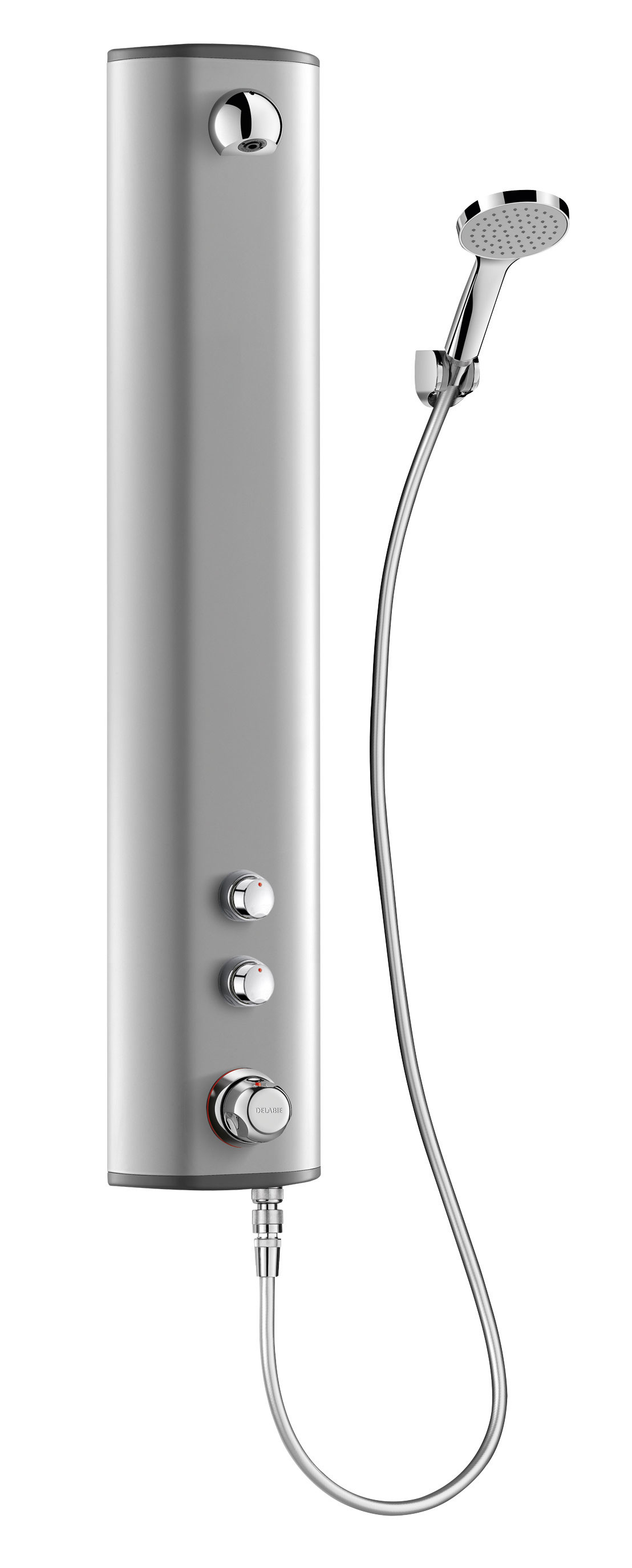 Anodised aluminium shower panel for wall-mounted, exposed installation.