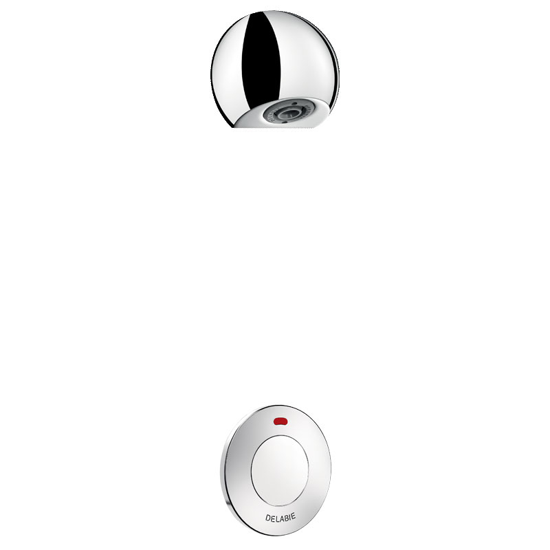 Chrome-plated ROUND shower head, tamperproof and scale-resistant with automatic flow rate regulation.