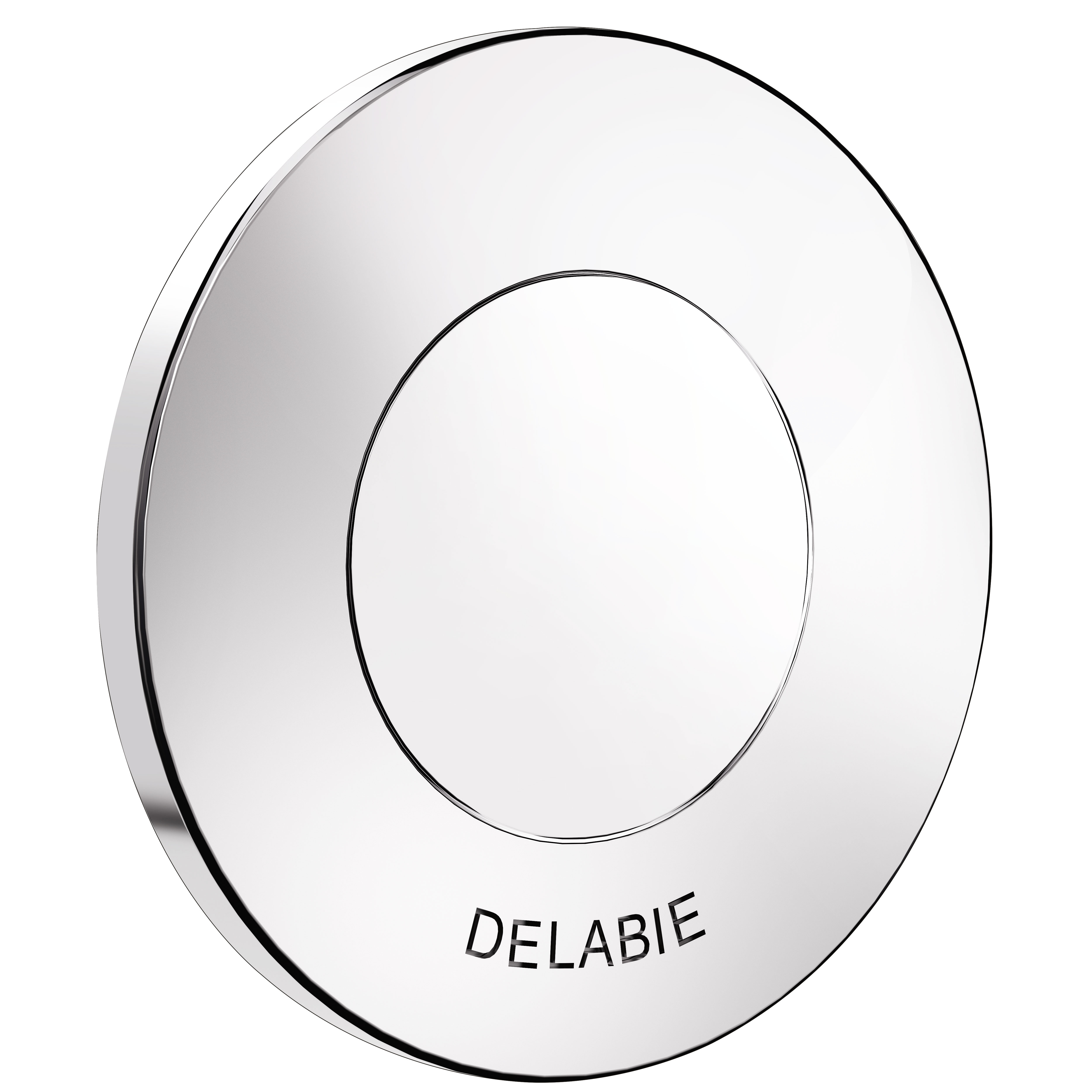 Chrome-plated metal push-button.