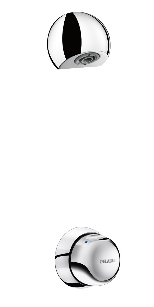 Chrome-plated ROUND shower head, tamperproof with scale-resistant nozzle and automatic flow rate regulation.